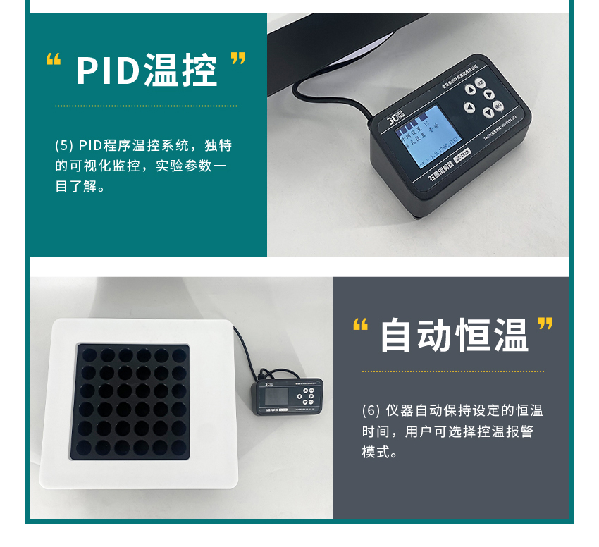- 采用PID程序温控系统,搭配独特的可视化监控功能。用户通过控制器界面能够清晰看到整个消解过程中的各项参数,如消解时间、保温时间、当前温度等,一目了然。