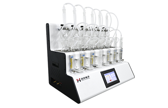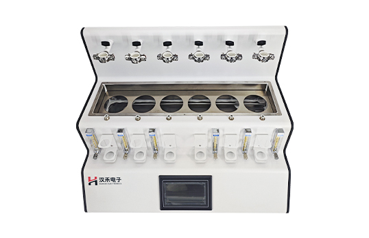 采用垂直加酸、氮气吹脱、酸化吸收一体化设计。盐酸入口、气体进口、样品出口三口一体但又相互区分,操作过程互不干扰。